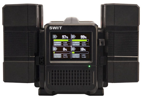 SWIT PC-P461S to poczwórna, szybka ładowarka V-Lock, pozwalająca na jednoczesne i szybkie ładowanie nawet czterech akumulatorów. Obsługuje zarówno akumulatory o napięciu znamionowym 14,4V, jak i 28,8V. Ładowarka oferuje szybkie ładowanie 6A/100W akumulatorów 14,4V oraz 3A/100W akumulatorów 28,8V, pozwalając zaoszczędzić do 60% czasu ładowania w porównaniu do zwykłych ładowarek.